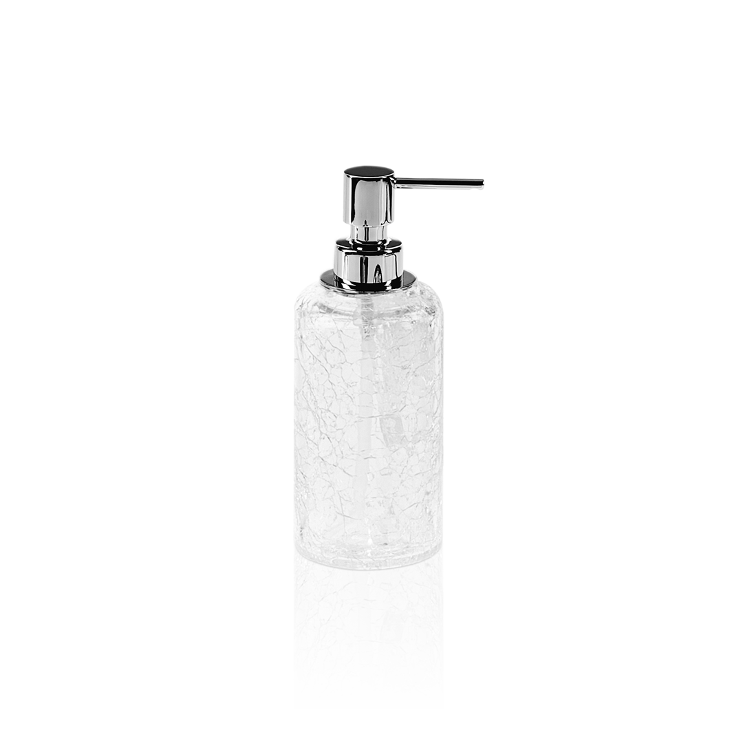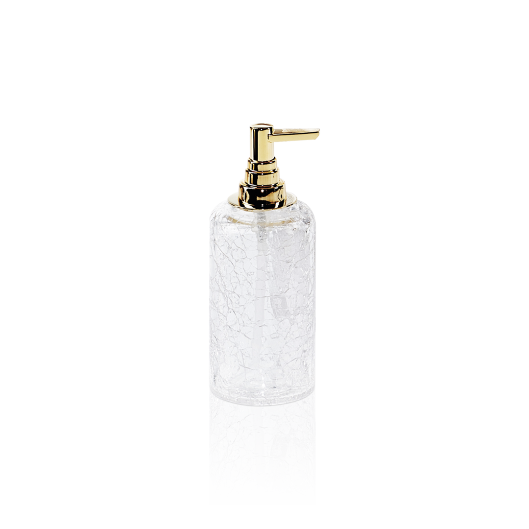Erhältlich in edlen Glas- und Metallkombinationen (z. B. Chrom oder Gold-Pumpkopf mit Crack-Glaseffekt) – passend zur CRACK-Kollektion.